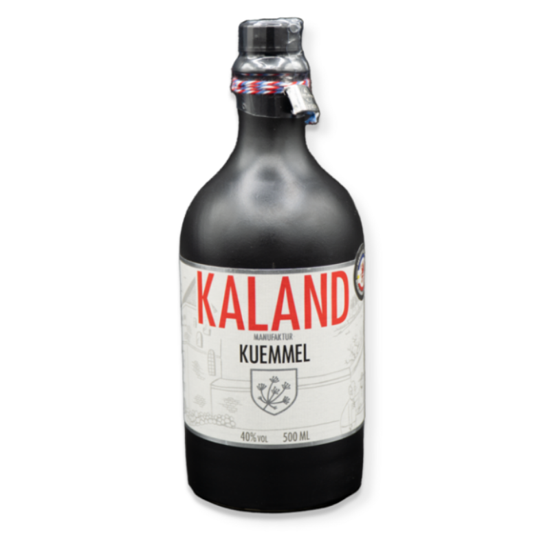 Diese Tradition lebt weiter. Der Kaland Kümmel wird immer zum Monatsbeginn gebrannt – erst milchig, dann durch Ruhe und Filtration zu einer herrlichen Spirituose veredelt. Abgefüllt in eine edle schwarze Tonflasche, handgeknüpft, verplombt und etikettiert. Perfekt? Vielleicht nicht immer – aber dafür mit Herz und Hand gemacht.